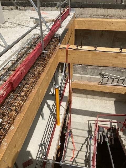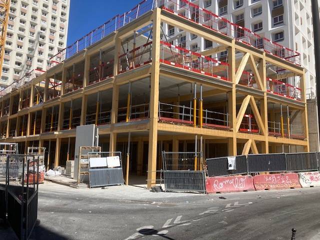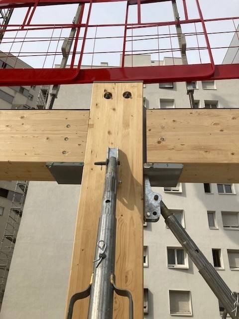 - Structures porteuses intermédiaires et périphériques en poteaux-poutres bois lamellé-collé apparents