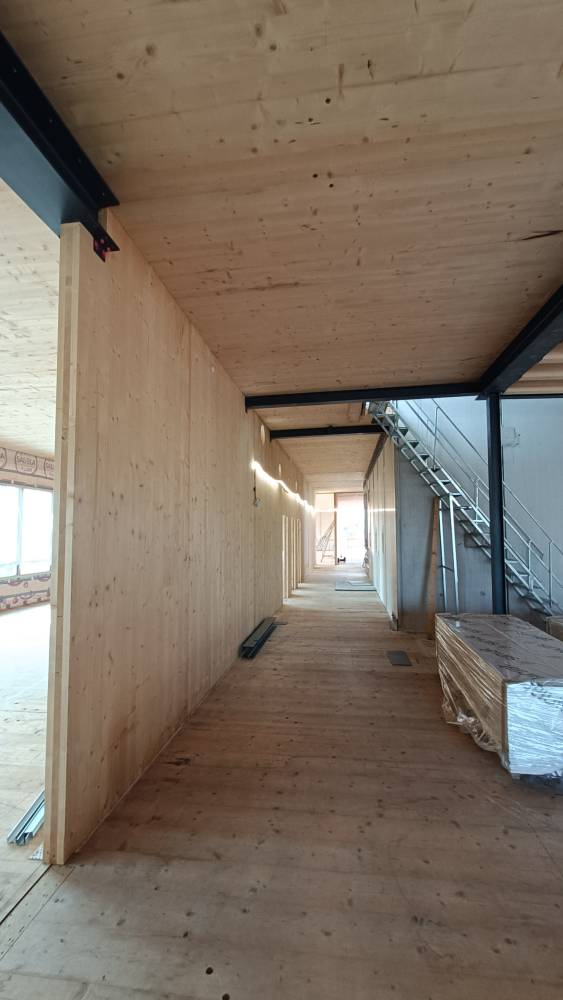 - Contreventement vertical par murs de refend CLT et noyaux durs en béton armé
