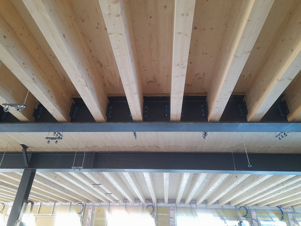 - Planchers massif contrecollés CLT pleins et nervurés de portée allant jusqu’à 9,9 m