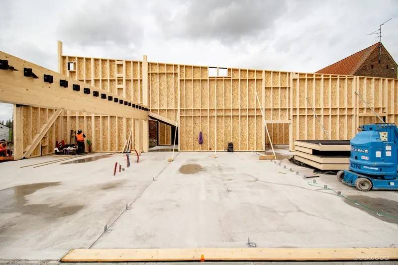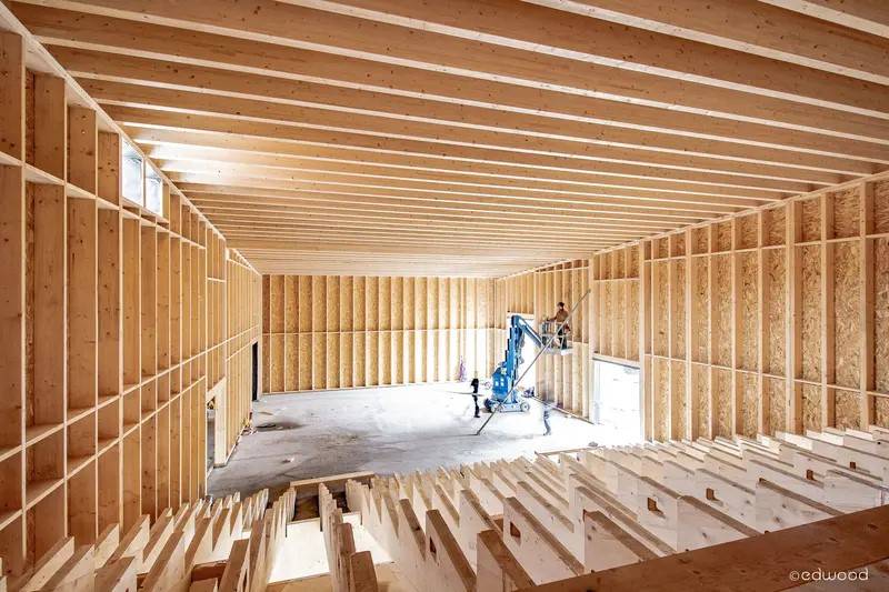 - Plancher, voiles et gradins en panneaux bois massif contrecollés CLT