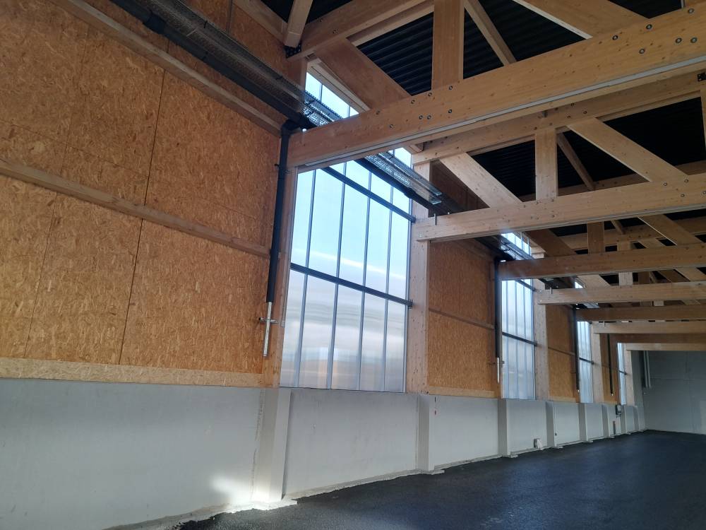 - Habillage extérieur en alternance avec du bardage bois et du polycarbonate