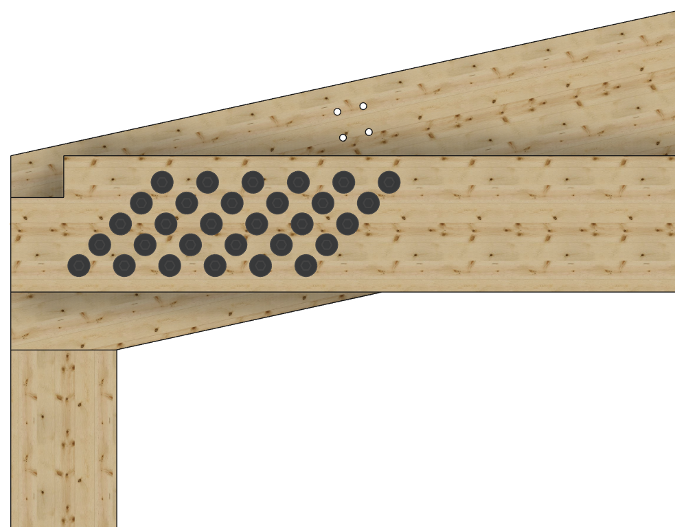 - Fermes de portée 20,6 m, avec arbalétriers, entraits et poinçons en bois lamellé-collé