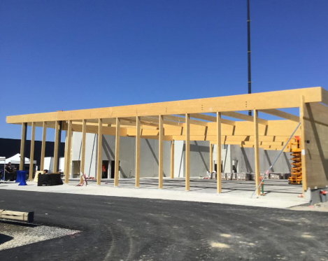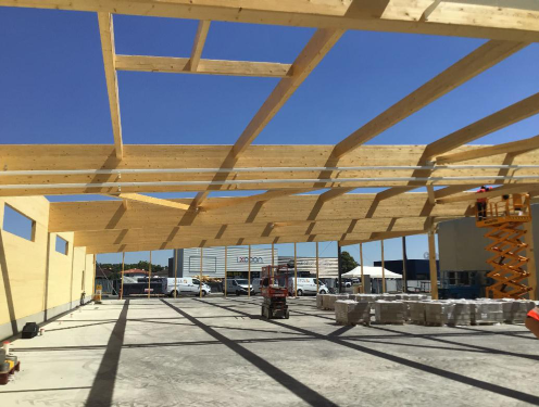 - Voiles périphériques et planchers de bureaux en panneaux massif contrecollés CLT