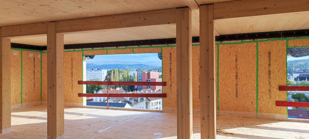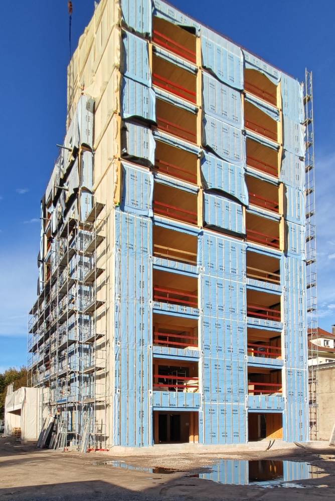 - Bâtiment R+10, avec de 11 niveaux en bois