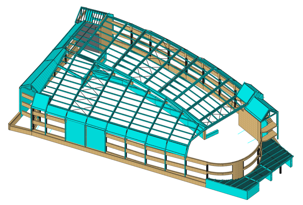 - Charpente de la toiture en bois lamellé-collé