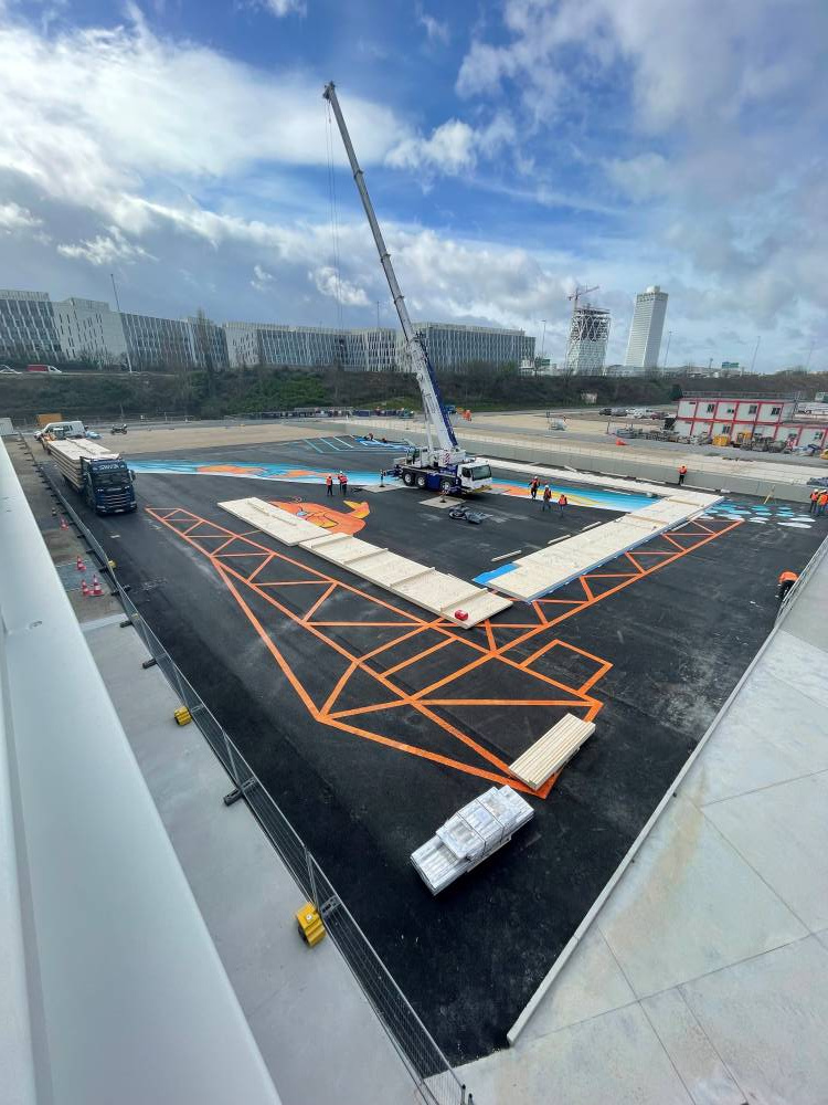 - Bassin fixés par consoles et chaises métalliques sur les panneaux CLT